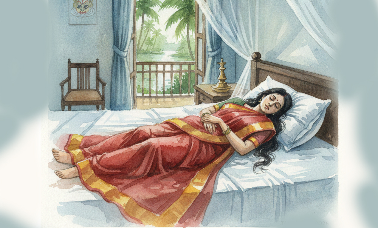 അവിടെയുണ്ടായിരുന്ന അസാധാരണമായൊരു ശാന്തത മനസ്സിനെ ഭീതിപ്പെടുത്തുന്നപോലെ തോന്നി. ജോലിക്കാരും ഈ ഭാഗത്തേക്ക് കടന്നുവരാറില്ലേ? ഒരുപക്ഷേ എഴുതാനുള്ള സൗകര്യത്തിനാവണം അവള് ശാന്തവും നിശ്ശബ്ദത നിറഞ്ഞതുമായ ക്വാര്ട്ടേഴിസിന്റെ അവസാനത്തെ ഈ മുറിതന്നെ തെരഞ്ഞെടുത്തത്.